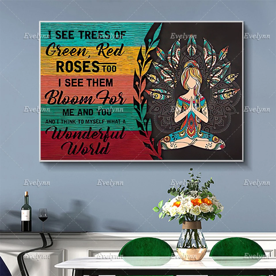 Yoga I See Trees Of Green Red Roses Too What A Wonderful World Poster Song Lyrics Wall Prints Home Decor Canvas Floating Frame Painting Calligraphy Aliexpress